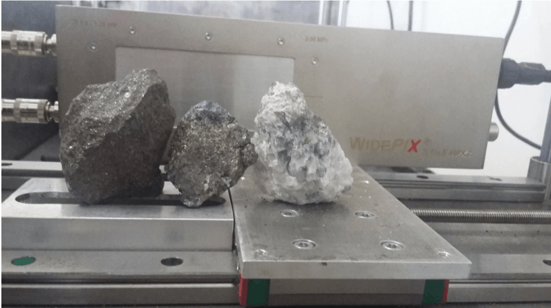 Above image show decomposition to fraction of lead and fraction of light elements of rock samples of general shape. Left image shows lead composition. Image on the right shows composition of light elements. Samples of Zn and Pb ore and waste rock were provided by Lovisagruvan and Hellas Gold mines as part of the X-MINE project.